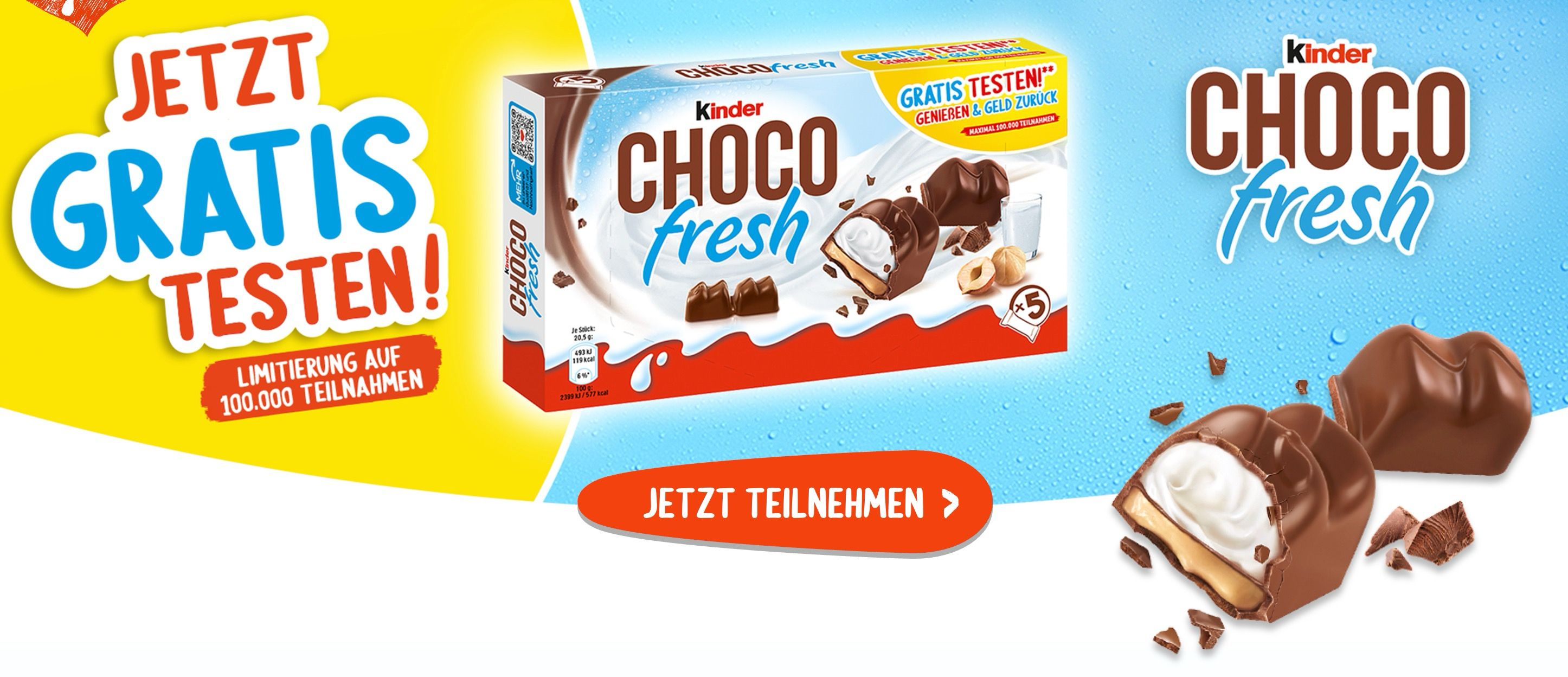 Kinder Chocofresh 5-pack: Buy a Kinder Chocofresh 5-pack with the “Gratis testen” sticker, then upload a photo showing the receipt and the pack to get your money back. Valid until May 10, redemptions are limited. I already got mine, and it's absolutely delicious. Then again, everything from Kinder is.